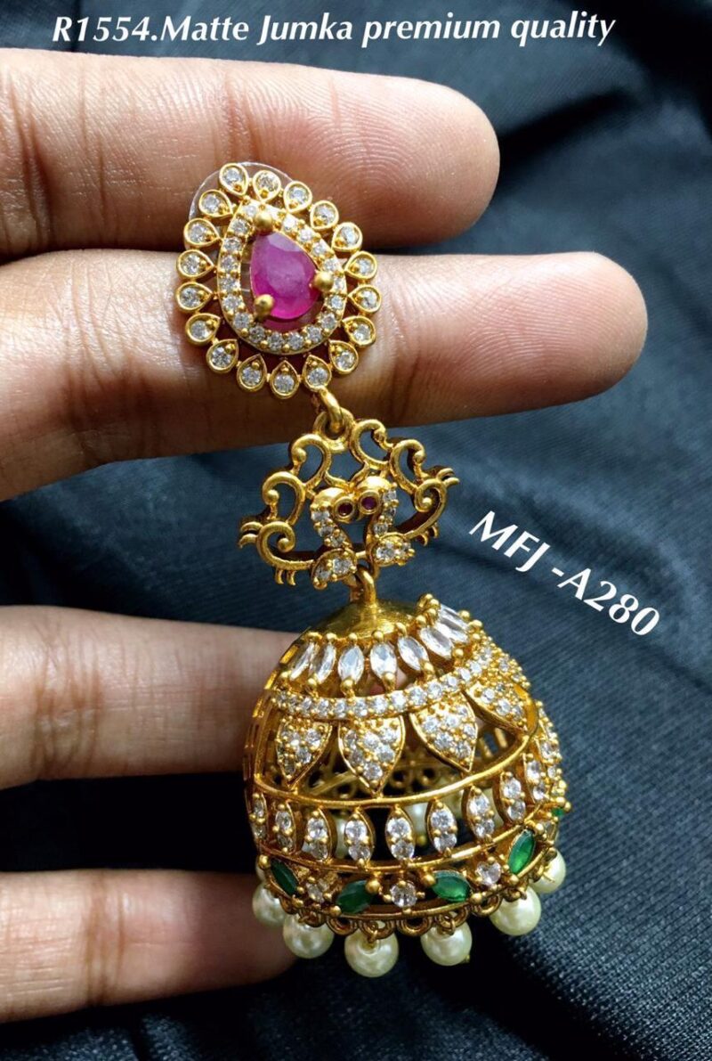 Multi Stones&Pearls,Peacock Jumka EArrings